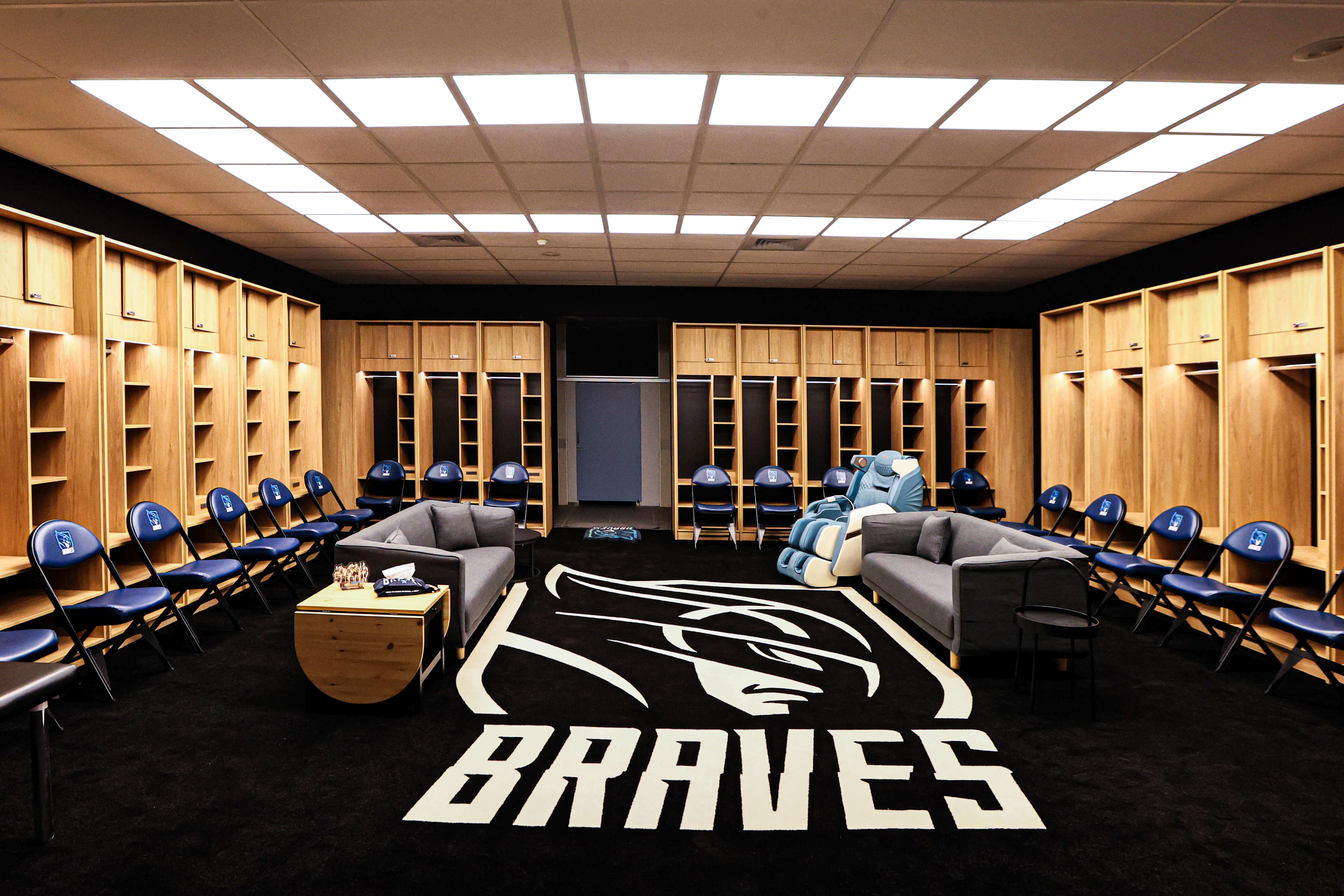 勇士球員休息室規劃設計為:防護區、球員及教練置物櫃、沙發休憩區,並優化硬體設備。整體空間以沉穩的黑色調及橡木材做搭配,呈現簡約俐落的空間概念。置物櫃以ㄇ字型對稱排列,每座櫃體皆擁有獨立照明和插座。全室燈具皆更換為LED光板燈優化室內照明及氛圍,並提供多段式照明功能。訂製的黑色地毯搭配比爾隊徽,燈光集中照射展現勇士剛強的氣勢。休憩區的沙發、茶几、圓桌及按摩椅,不管是後衛還是210公分的中鋒,皆能舒適得享受放鬆。身為陣中隊魂的「野獸」林志傑第一次踏進升級的休息室說:「終於有像回家的感覺!」而總教練許晉哲也表示:「很感動,一切都很棒!」