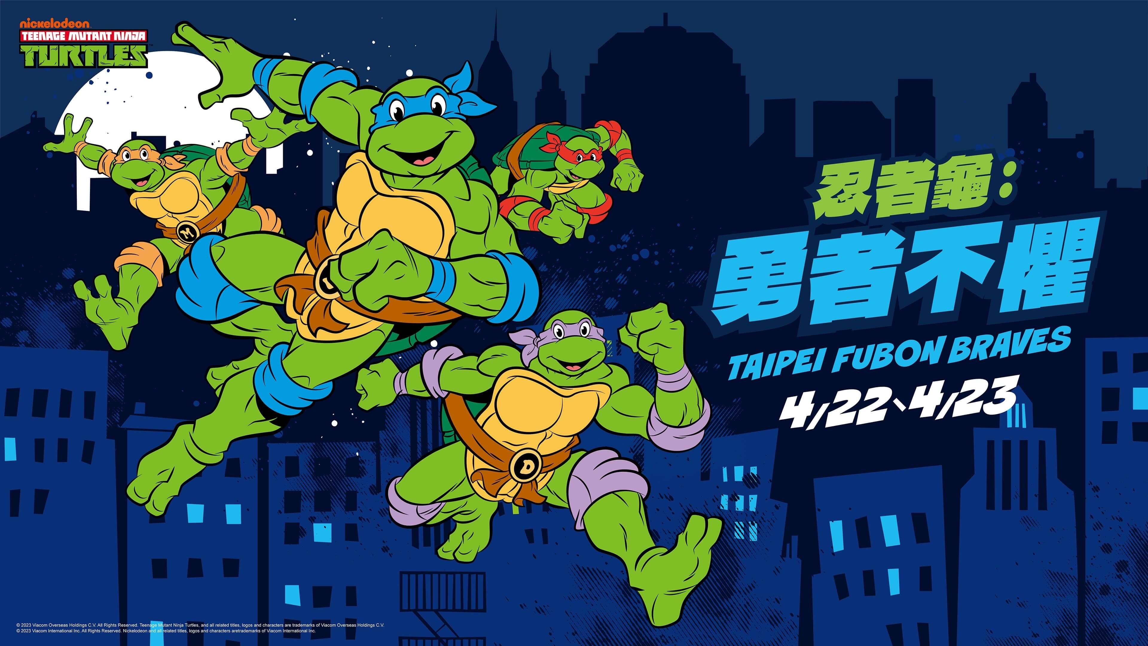 臺北富邦勇士四月份唯一的主場週,變種世代即將來臨,首度與 IP 角色《忍者龜 Teenage Mutant Ninja Turtles》聯名合作,4 月 22、23 日打造「忍者龜:勇者不懼」主題週!週六夜晚迎戰福爾 摩沙台新夢想家,週日交戰桃園璞園領航猿,勇士們將與忍者龜變種大合體,一起無所畏懼對抗所 有邪惡勢力!
