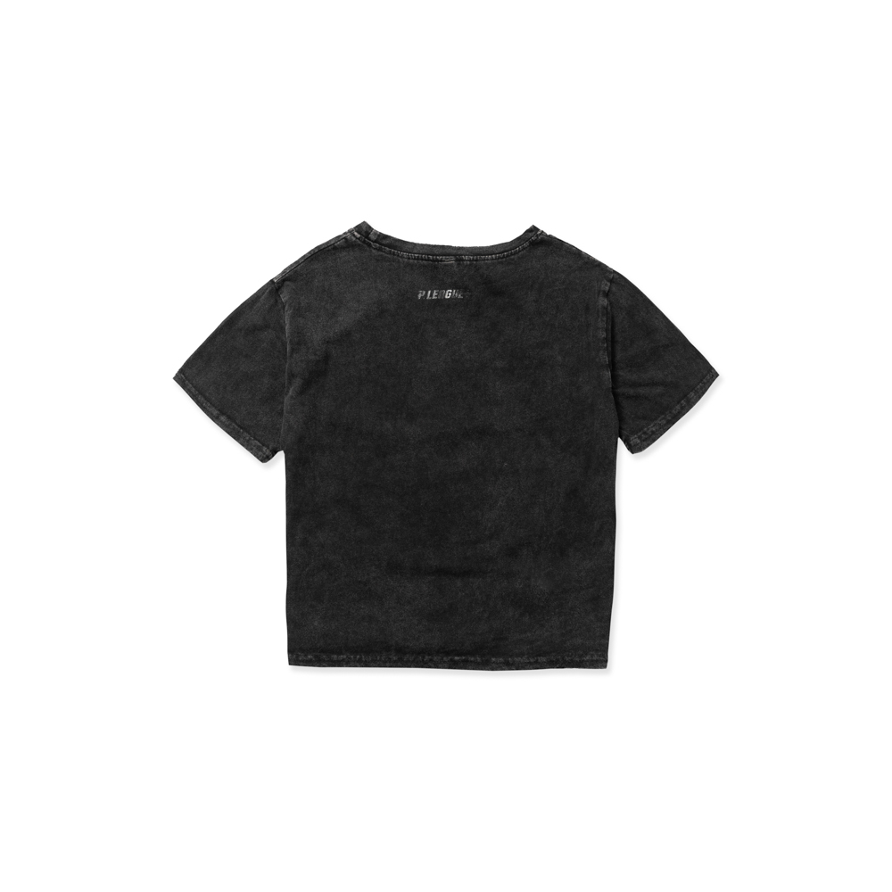 PLG黑潮系列以黑印Logo為基底,此款品項運用水洗刷舊工藝帶來獨特的洗鍊造型,搭配環繞在胸前的聯盟品牌文字呈現。