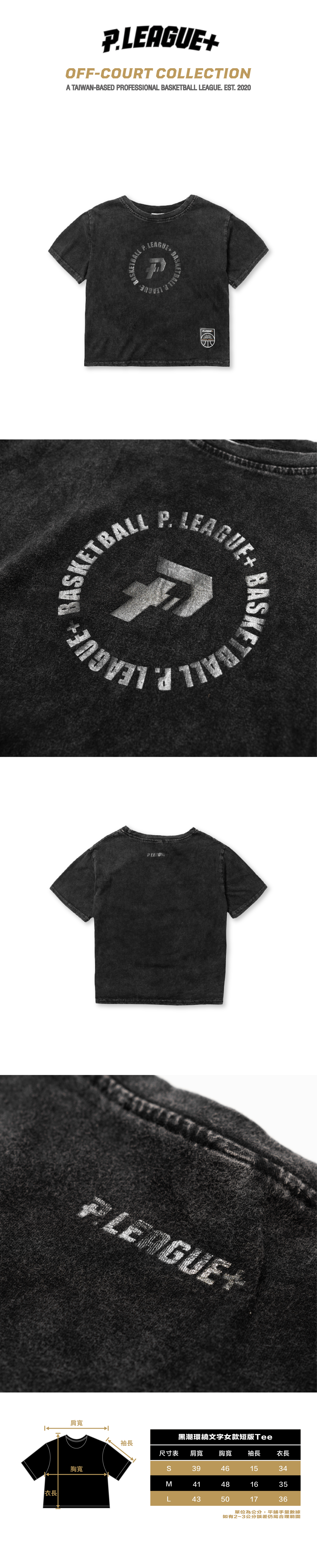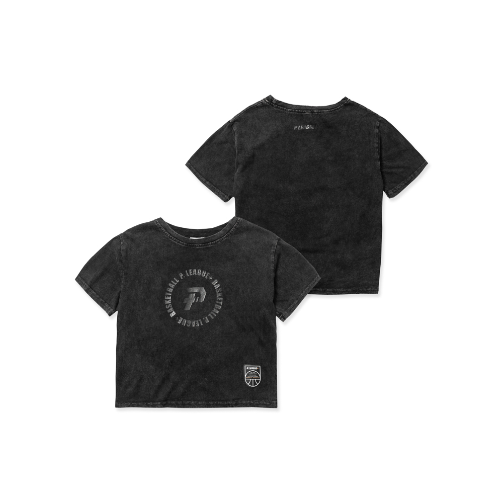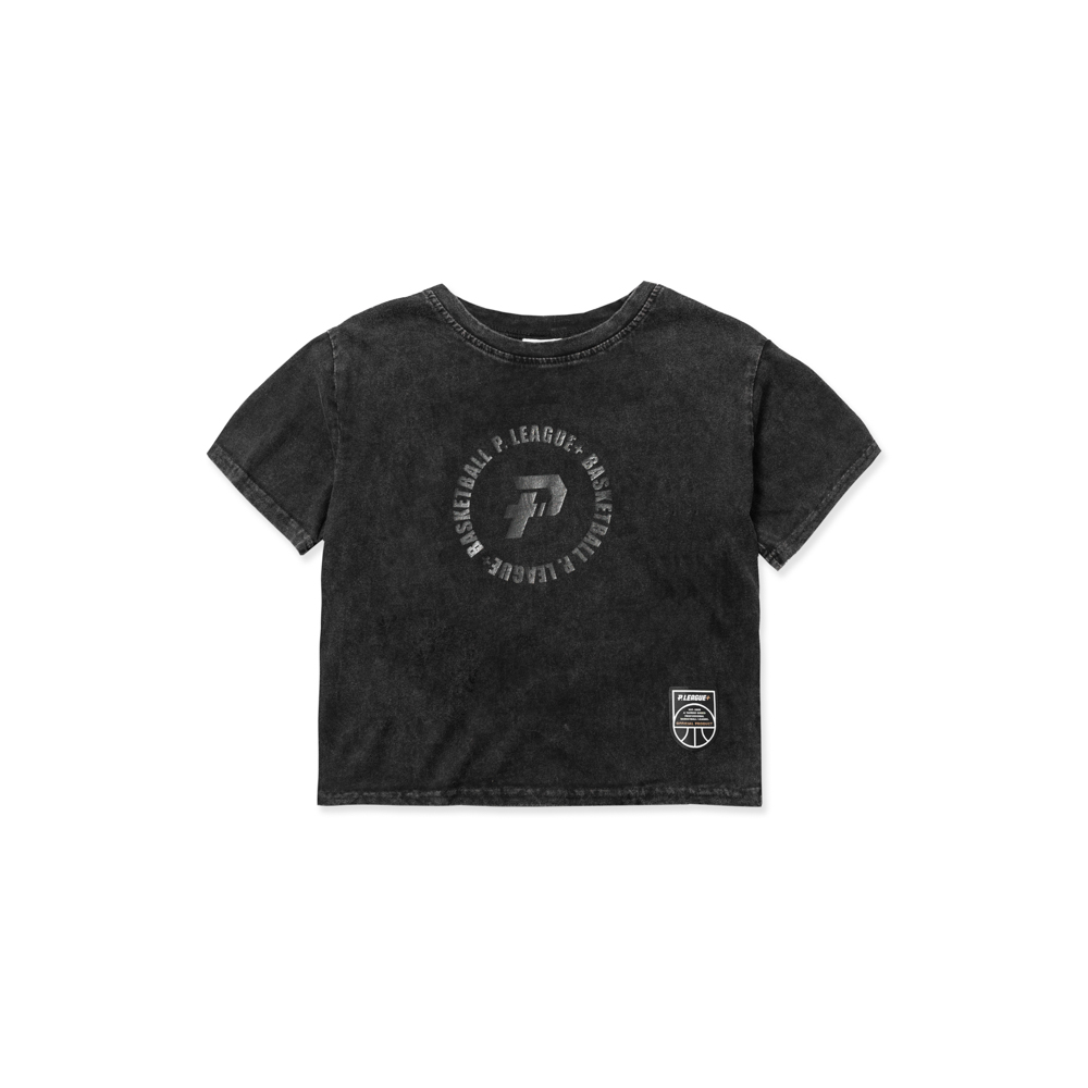 黑潮環繞文字女款短版Tee|水洗黑