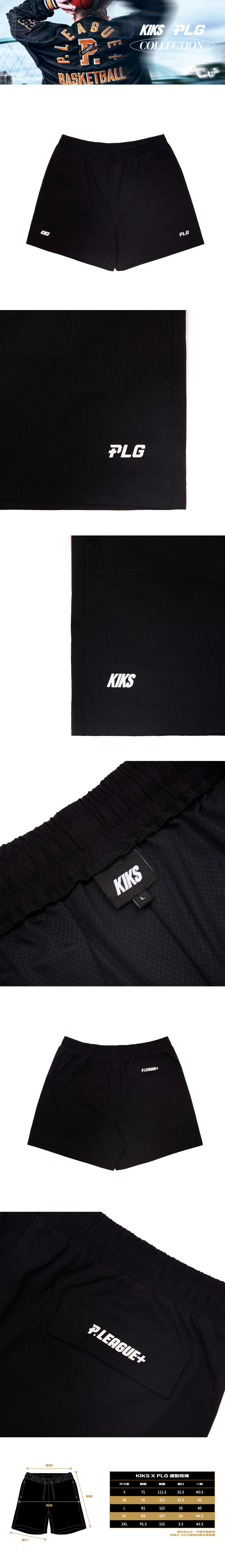 褲身配置 KIKS 與 PLG 標誌細節,低調點綴聯名識別,兼具實穿與收藏價值。