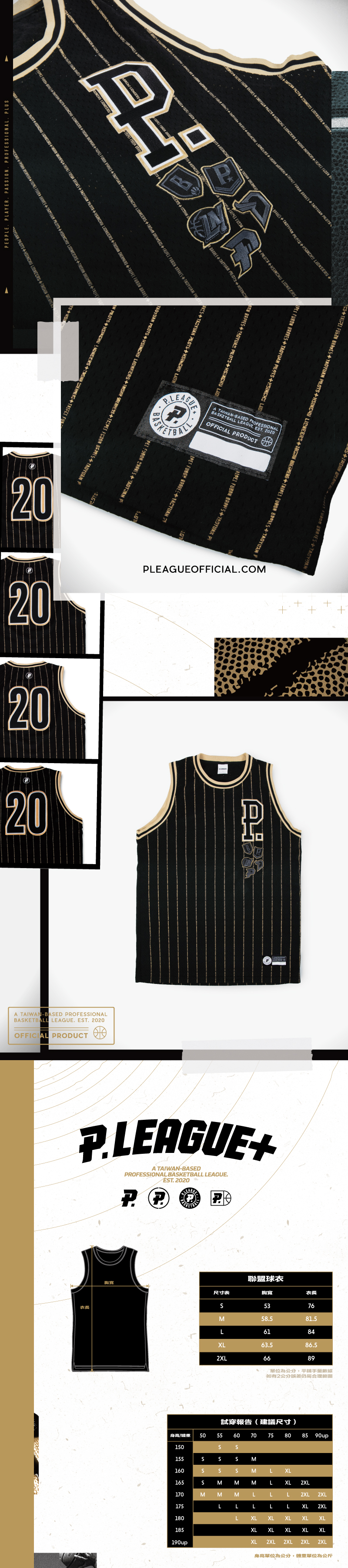 首次四隊聯名產品,不論你支持哪一隊,一定都是臺灣籃球的支持者!背號20象徵二十年磨一劍,左胸口的復古大P LOGO和下面四隊加聯盟的LOGO齊聚,球衣上的線條也是一大細節,全部都是用 P.LEAGUE+與四支球隊的英文隊名字樣來設計!並有兩色可供選擇,黑色低調華麗,白色簡單俐落,這一套別具意義的球衣,值得收藏!